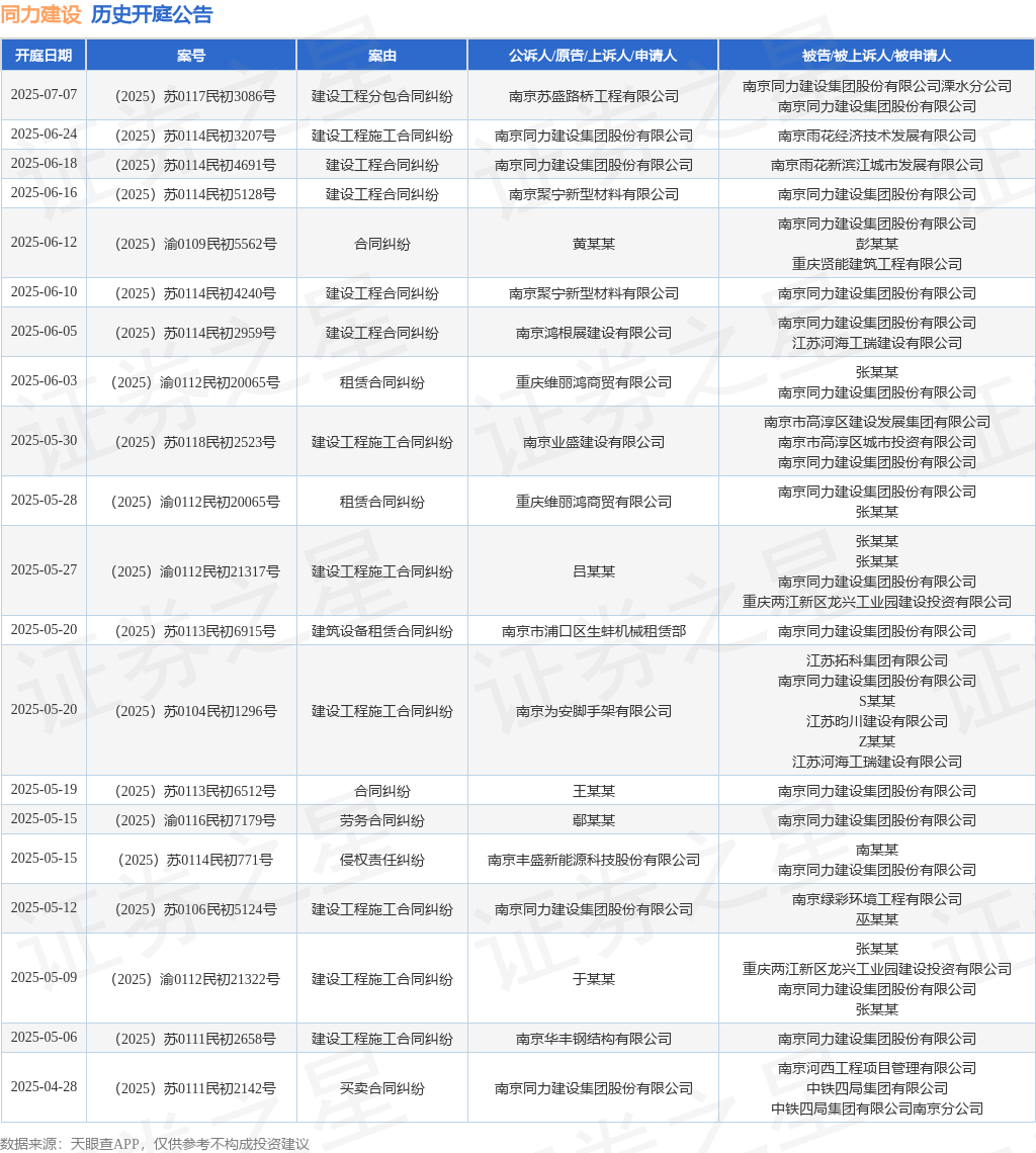 本站消息,根据天眼查APP显示,近日公布了一则南京同力建设集团股份有限公司作为被告/被上诉人的开庭公告中国股票配资网站,详细内容如下: